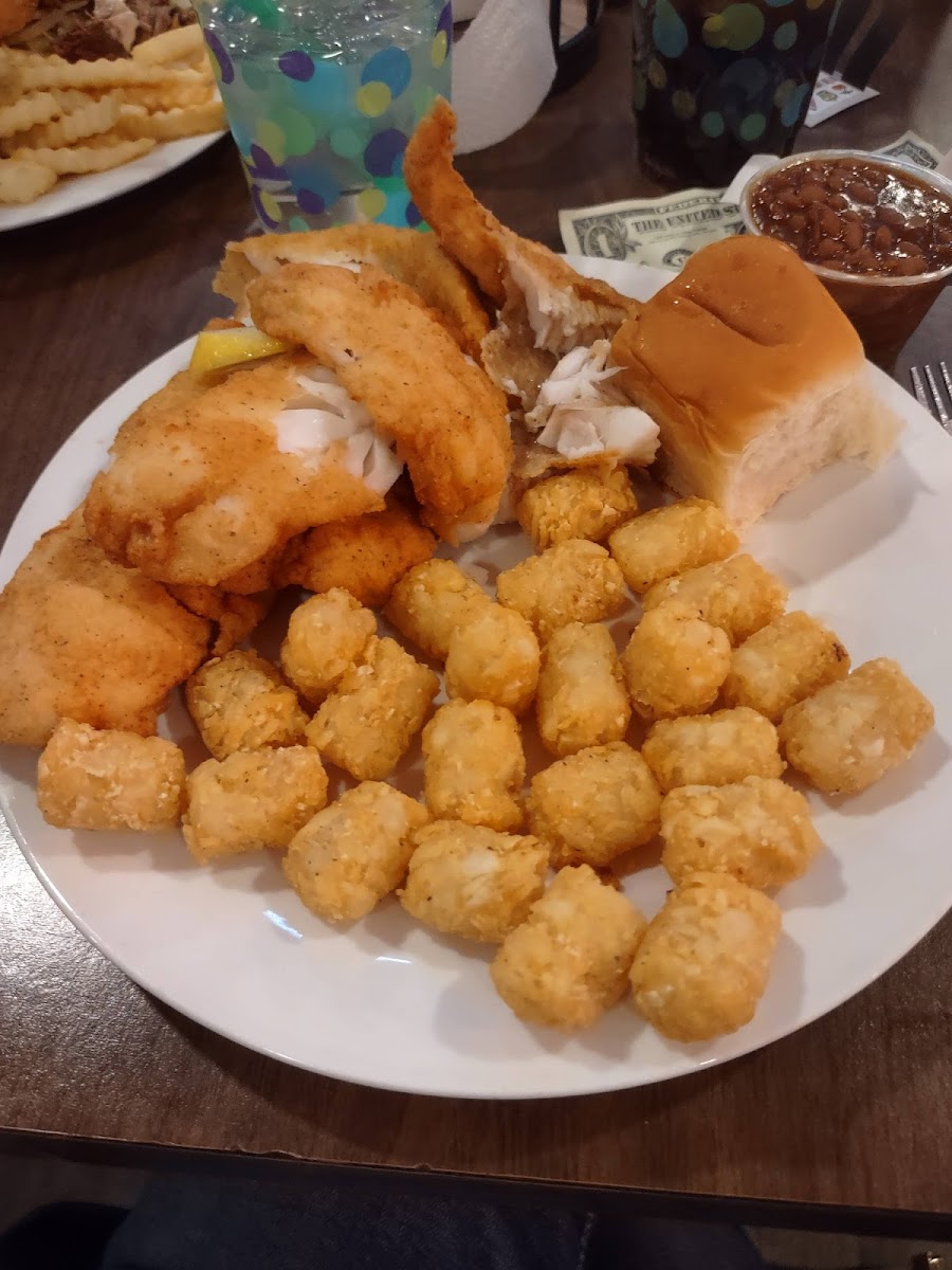 We tried the Friday Fish Fry. Food was good. We will definitely be back. We both ordered the 2 PC Fried cod plate. Came with a choice of potato, Cole slaw, baked beans, and hush puppies. It also comes with an optional cup of soup! We decided to go for it. The beef vegetable soup was delicious and reminded me of my grandmothers. Make sure to be hungry. Lots of food. Gave it 4 stars for not having malt vinegar for the fried cod and the texture and flavor were off on the hush puppies. They weren't missed. I highly recommend this hidden gem.